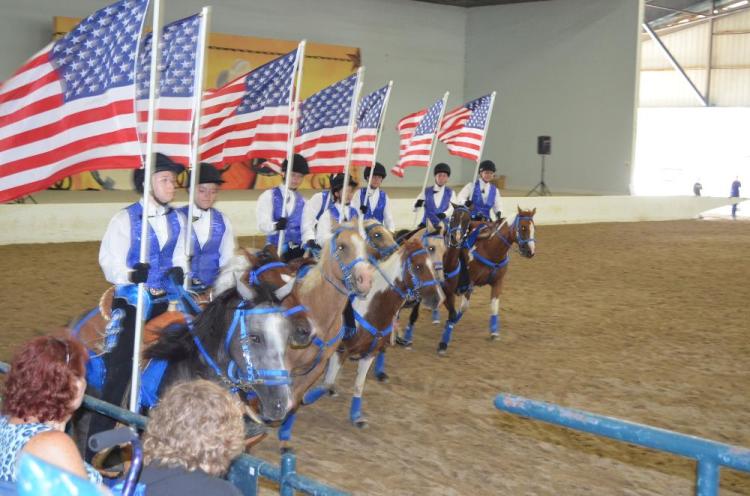The BreyerFest 2019 theme was horse heroes. This Civil War reenactor represented the riderless black horse used in the funeral of a fallen military person. Note the black boot mounted backwards in the stirrup to represent the fallen soldier looking back on their comrades one last time.