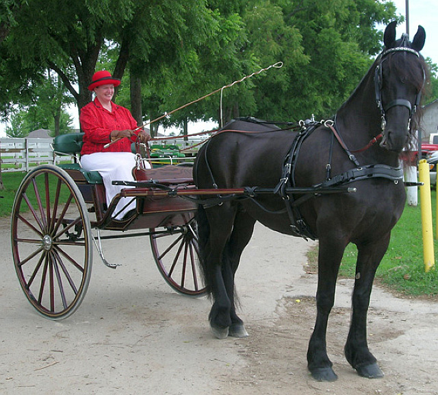 The Kentucky Horse Park provides carriage tours of the grounds. These two are preparing for their turn.