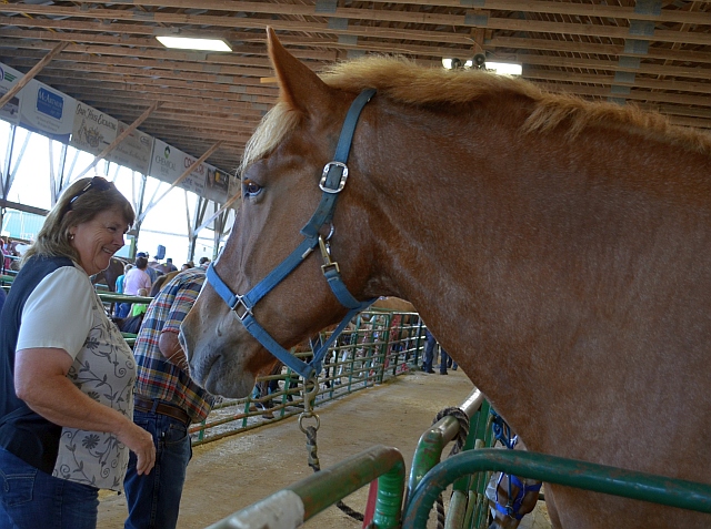 The bids on this tall saddle horse soared once the owner demonstrated that the horse was willing to lay down in order for the rider to climb on.