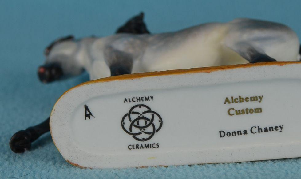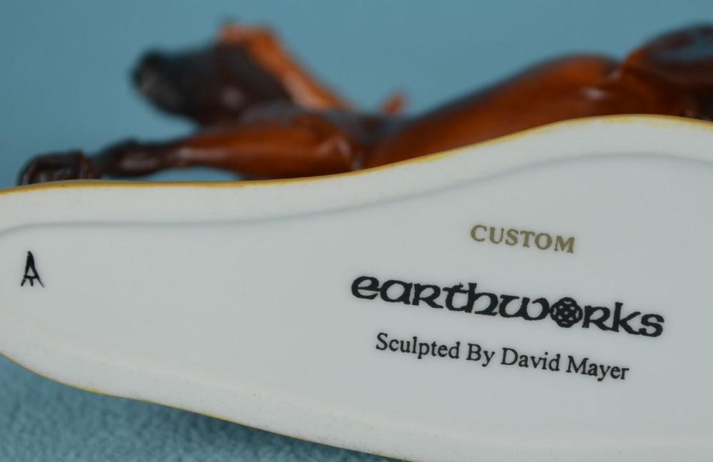 An artist of Anthony’s talent has many opportunities for employment. He served as head of painting at Windmill studio in Worcestershire. During this period, he also teamed up with mold maker Mark Farmer and participated in a few different enterprises. These included Earthworks (with Mark’s wife Helen Farmer and sculptor David Mayer) and Alchemy (producing horses for UK artist Donna Chaney of Animal Artistry and others) . Most of the horses painted by Anthony during this period display the little “pine tree” symbol, which consists of his initials with the letter T inside of the letter A.