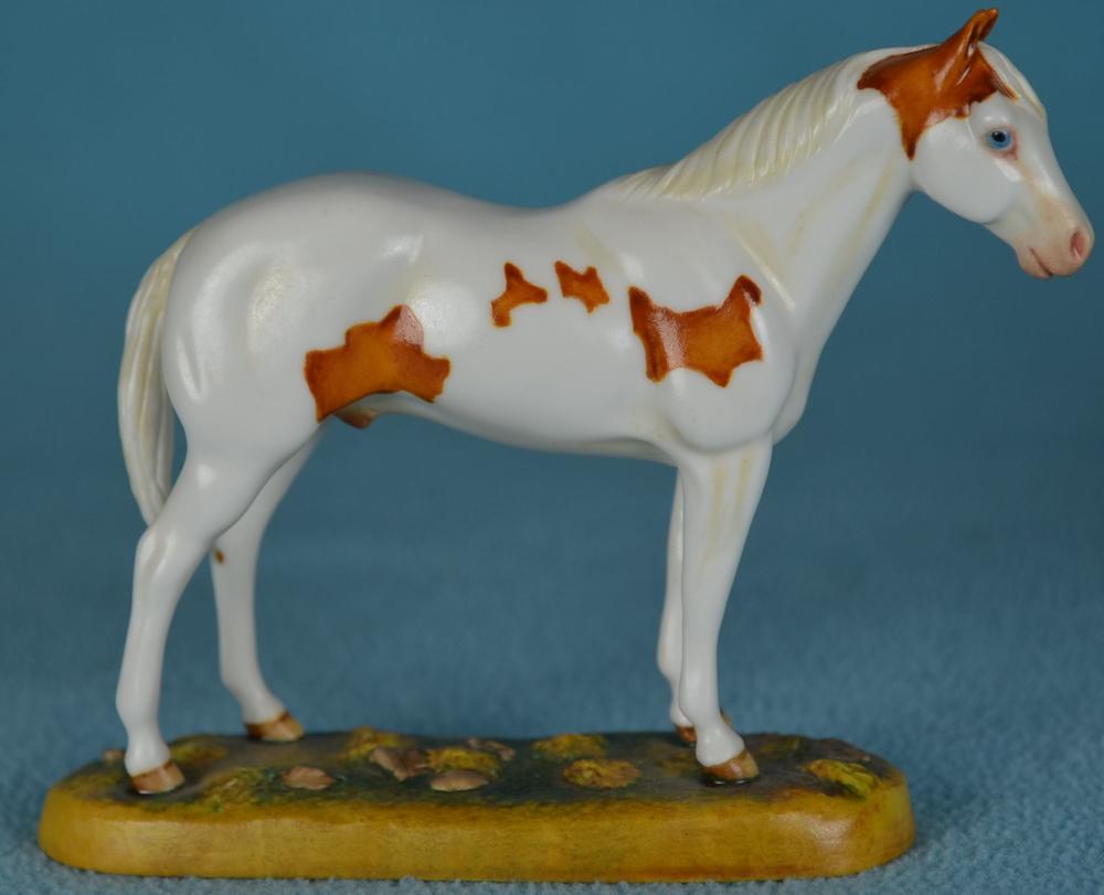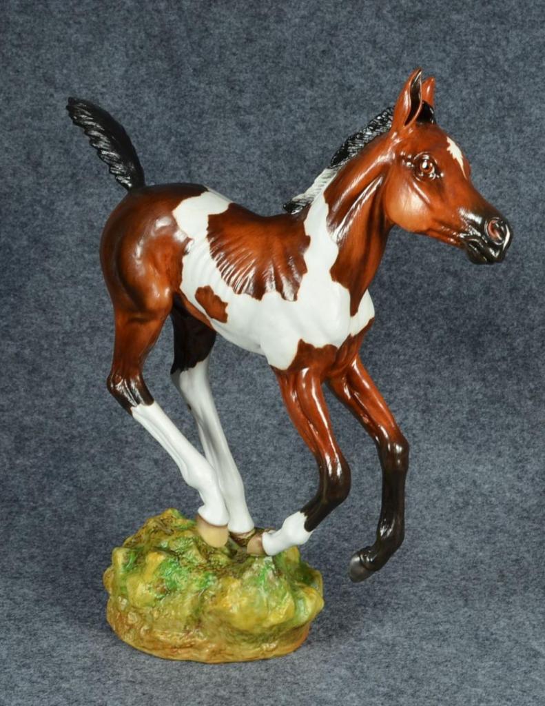 His name was Anthony Reginald Tomson, known as “Reg” in the paint room at Royal Worcester, where he began working in the early 1960s. His skillful hand and keen eye provided the incredible detail for many of the horses and bulls designed by Doris Lindner and other sculptors. This Royal Worcester Welsh Mountain Pony stallion is a fine example of Anthony’s painting style, which seems to bring the subject to life and captures the spirit of the animal.