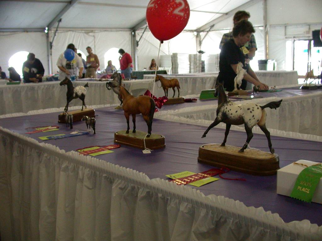 In 2002 Elizabeth Bouras was the official photographer for the first Breakables Live model horse show, hosted by Karen Gerhardt at BreyerFest in Lexington, Kentucky. Liz was also the solo judge for the huge Americanware division (breed and color, but no collectibility at this show). After taking photos at the show Liz traveled around during the weekend to take photos at the Kentucky Horse Park, the Artisans Gallery, and room sales at the Clarion. I have posted a sample of the photos from the DVD below.